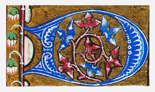 • Una capitular, estas letras inician los capítulos manuscritos, son de mayor tamaño y suelen estar decoradas con motivos florales. Contaremos con alfabetos completos, de modo que cada participante pueda elegir iluminar la que desee.
