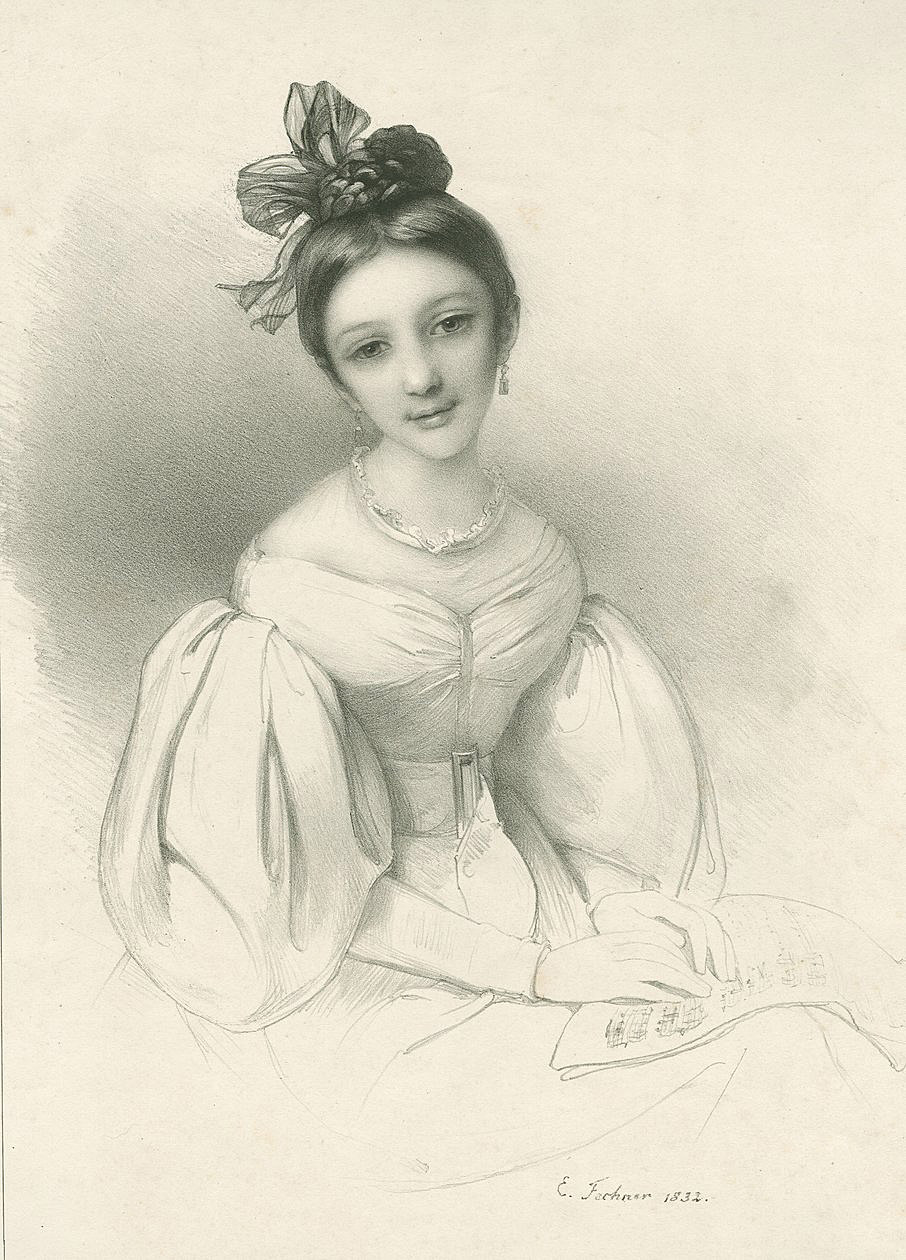 Fig. 6. Eduard Fechner. Clara Wieck. París, 1832. Litografía. Robert-Schumann-Haus Zwickau