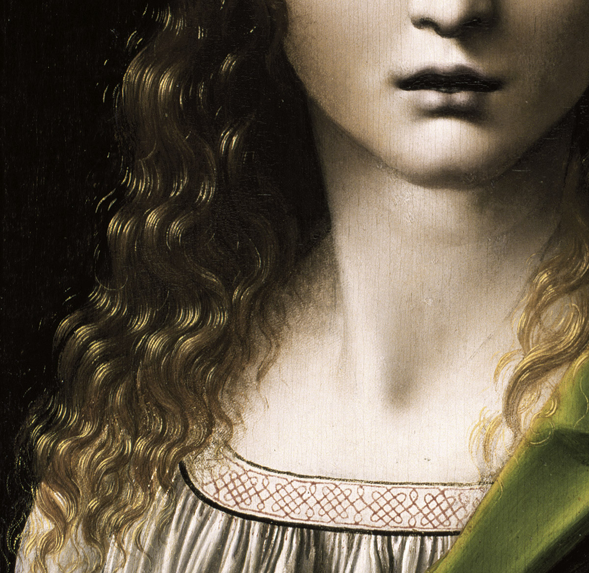 A diferencia de la iconografía del Salvator Mundi (fig. 2), el Cristo joven del Museo Lázaro ciertamente es una imagen muy infrecuente. Podría decirse que estamos ante una versión pictórica de los bustos en terracota o mármol –la mayoría representando a San Juan Bautista niño o adolescente–, tipología bellamente tratada por eminentes artistas, desde Mino da Fiesole a Agnolo di Polo, pasando por Antonio Rossellino, Benedetto da Maiano, Desiderio da Settignano o Giovanni della Robbia. Pero la tabla del museo madrileño no representa al Precursor, como demuestran la ausencia de la piel de camello en su vestidura y su cuidada melena. De hecho, su cabellera, maravillosamente pintada, sigue puntualmente la descripción incluida en la carta apócrifa de Publio Léntulo sobre la fisonomía de Cristo: “Sus cabellos, partidos en medio de la cabeza al estilo de los nazarenos, tienen el color de la avellana madura y hasta el nacimiento de las orejas son lisos y sin brillo, pero desde las orejas hasta los hombros son de color de cera virgen y muy resplandecientes” (fig. 3). Y sabemos que Leonardo se interesó por esta desusada iconografía de Jesús adolescente, mencionada por Lomazzo como equivalente moderno de la habilidad de Parrasio para representar los movimientos del alma: “Encontré también una cabecita de barro de Cristo cuando era niño, de mano del propio Leonardo da Vinci; en la cual se ve la sencillez y la pureza del muchacho, en unión de un no sé qué que expresa sabiduría, entendimiento y majestad; y su aspecto, pese a ser el de un tierno muchacho, parece tener algo de viejo, de sabio, una cosa verdaderamente excelente”. Todavía en 1504 Isabella d’Este, marquesa de Mantua, escribía a Leonardo solicitando “un Cristo jovencito, de unos doce años, que es la edad que tenía cuando disputó en el templo”, petición de fecha posterior a nuestro cuadro –pintado hacia 1490-95– pero de gran interés porque alude a un acontecimiento clave en la vida de Jesús.